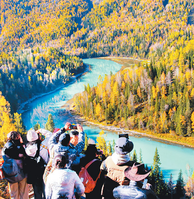 近日,新疆阿勒泰地区布尔津县喀纳斯景区进入最佳观赏季,白桦树、云杉、落叶松树林层林尽染,与湖水相映生辉,美不胜收,吸引许多游客前来打卡游玩。今年,喀纳斯景区接待游客已超过360万人次。