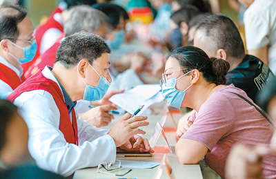 8月19日,浙江省金华市中心医院内,来自该院胸外、感染、乳腺等科室的专家在医师节义诊活动中和咨询者面对面沟通,看诊解惑。 |