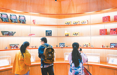 近日,第十八届杭州文化创意产业博览会在浙江杭州白马湖国际会展中心举行。图为香港展区的文创产品吸引参观者。