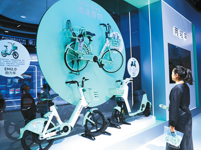 笔者走进国际交通技术与设备展览会,在滴滴展区,几款青绿色的新车型吸引了众多观者的目光。其中,共享电助力单车EM2.0搭载了轻量化电池和助力传感器,当骑行达到一定速度时,电助力会自动介入,既让用户骑行更轻松,还能更省电。值得一提的是,滴滴青桔电单车VM6.0不久前凭借优异的综合表现,斩获享有“设计界奥斯卡”之称的红点设计大奖,据悉,该奖项是国际公认的全球顶级工业设计荣誉之一。