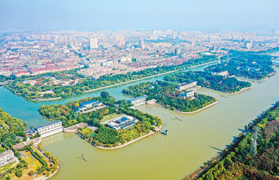 宁夏回族自治区银川市在第一再生水厂建设“口袋公园”。图为银川市节水主题公园。 |