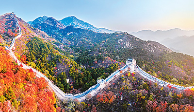深秋时节,北京八达岭长城漫山红叶。 |