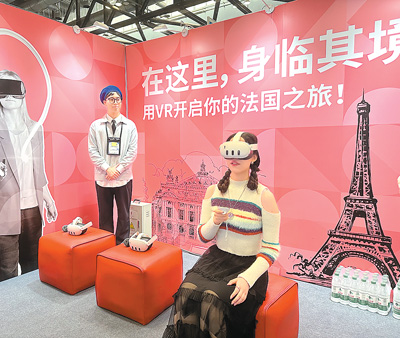 法国高校展区设立了VR体验项目,观众戴上眼镜后可以看到埃菲尔铁塔等地标建筑。 |