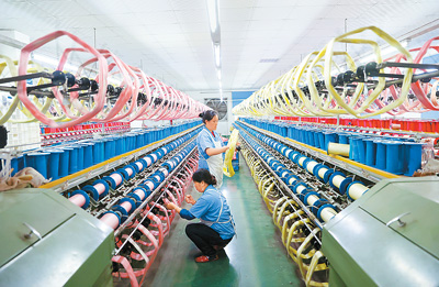 重庆市黔江区是该市第一大蚕桑种植基地,当地近年积极延伸蚕桑产业链,发展丝绸产品加工业,产品远销海外,有效拓宽了农民增收渠道,赋能乡村全面振兴。图为11月12日,工人在黔江区工业园区一丝绸公司生产车间络丝。