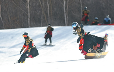 滑雪爱好者在内蒙古自治区阿尔山市太伟滑雪场滑行。 |