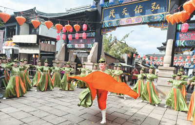 同一时刻,在宁波南塘老街,青海海西州德都蒙古民歌艺术团携带着古老而又神秘的乐器托布秀尔,弹唱起了《黑走马》;宁波慈溪达蓬山景区,云南马缨花艺术团以大地为舞台,翩翩起舞;宁波北仑九峰山景区,山西太重鼓乐艺术团气势磅礴的鼓点吸引了众多游客驻足观看……
