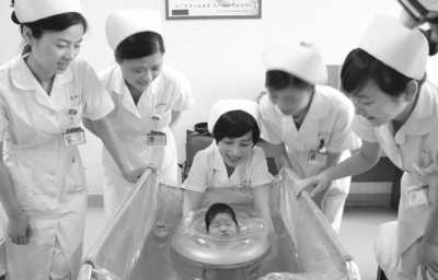 浙江大学医学院附属妇产科医院在产科病房推出新生儿游泳这一服务,有利于新生儿身心健康发育,引起了新妈妈新爸爸的极大兴趣。