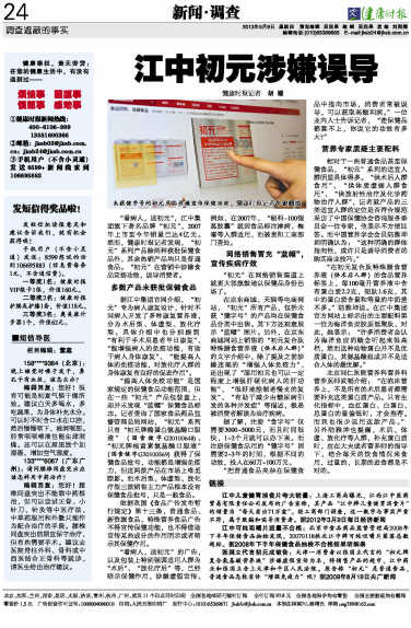 “看病人,送初元”,江中集团旗下著名品牌“初元”,2007年上市至今年销量已达4亿元。然而,健康时报记者发现,“初元”系列产品除两种获批保健食品外,其余热销产品均只是普通食品。“初元”在营销中涉嫌食品宣扬功效,误导消费者。