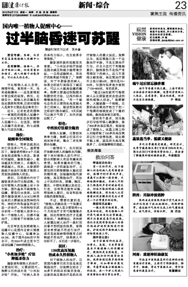 受访专家:焦辉,北京军区总医院植物人促醒中心主任。