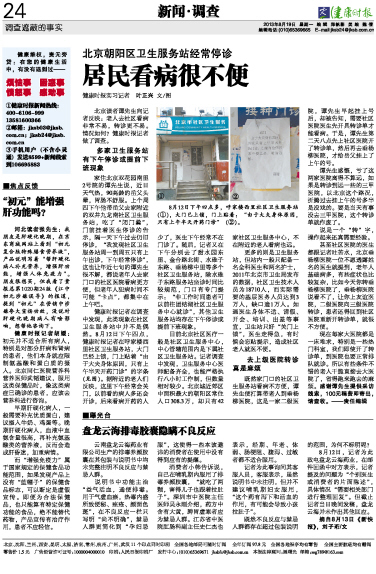 目前北京社区医疗一般是社区卫生服务中心,中心管辖范围内是下属社区卫生服务站。记者调查中发现,卫生服务中心医师配备齐全,也能严格执行八小时工作制,但数量相对较少。北京城近郊区中面积最大的朝阳区常住人口308.3万,却只有42家社区卫生服务中心,不在附近的老人看病也远。