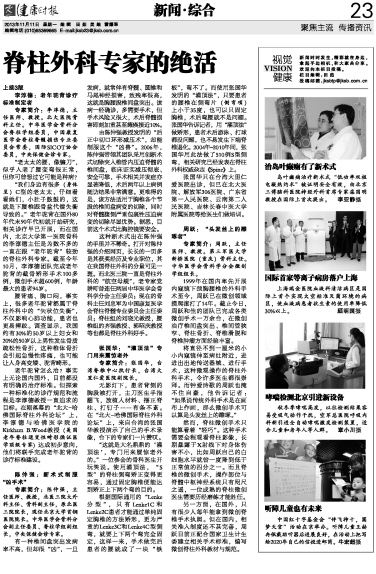 看着这位清瘦的脊柱大腕,记者好像明白了为什么年过60的他看起来像四五十岁,并且依然能够“hold住”相当耗体力的骨科手术。