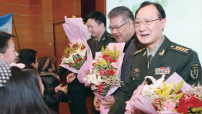 立春后,孩子长个进入 “爆发期”。由健康时报社主办的“中国儿童生长发育健康传播行动”日前走进重庆,联手西南医院儿科专家为300多位听众科普最新、最细的生长发育知识。会后患者激动地向西南医院政委韦邦福大校(右一)等专家献花。