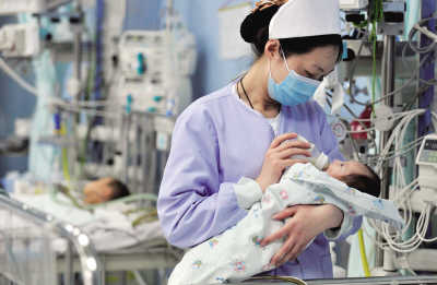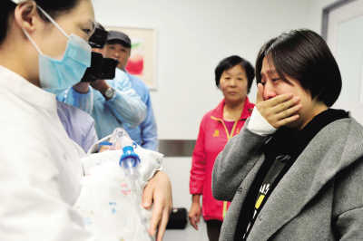 出生仅两个小时的复杂先心病患儿溜溜,日前在北京华信医院(清华大学第一附属医院)成功接受大动脉调转手术。大动脉转位是新生儿期最常见的紫绀型先天性心脏病,患儿心脏的主动脉与肺动脉位置相反,影响血液循环。小溜溜是室间隔完整的大动脉转位,症状更严重,随时可能死亡。手术由医院院长、中国心脏外科顶级专家吴清玉教授进行,这也是我国成功实施的最小年龄的先心病开胸手术。图为小溜溜一直被护士照顾着(上)、小溜溜术后与妈妈相见(下)。