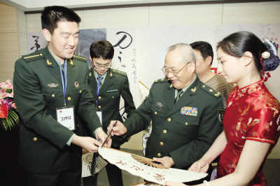 第二军医大学长海医院血管外科主任景在平(左三)日前在上海举办爱心书画展,募集资金用于救治患有“心脏主动脉瓣狭窄”的老年患者。景在平是全国血管外科学组副组长、全军血管外科学组组长,擅长腹主动脉瘤、主动脉夹层动脉瘤、心脏主动瓣狭窄等主动脉疾病的腔内微创治疗。他创新的手术技术“微创治疗心脏主动脉瓣狭窄”,创口小、风险低,取代了传统开胸手术。