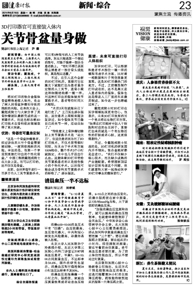 不过,令戴尅戎院士忧虑的是,3D打印机的研发国内并不领先。钛合金耗材都是全进口。“我们不仅缺少核心技术,而且缺少成熟的产业链配套。希望国家顶层设计层面考虑这个问题,我们愿意和大家一起推动医学3D打印事业的整体前行。”