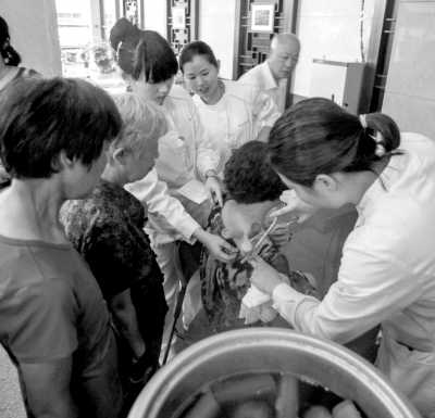 长针治急性面瘫 浙江省中医院省级名中医宣丽华采用的“一针一穴皮下插针”治疗法,只在患者背部使用一枚特制的长“针”,对急性面瘫患者效果明显。 |