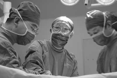 日前,93岁的中国科学院院士、第二军医大学东方肝胆外科医院吴孟超教授(中)亲自主刀,仅用5分钟为来自湖南株洲一位5个月大、体重不足6公斤的女婴成功切除9×9cm肝脏巨大肿瘤。患儿已康复出院。国内外对如此幼小的婴儿进行肝脏巨大肿瘤切除鲜有报道。图为手术中的吴孟超院士。