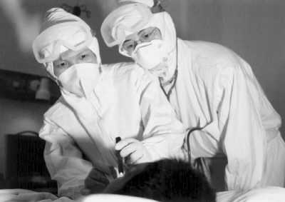 戴着薄薄的一层口罩,赵敏带领医生护士们 开始进行抢救,大量分泌物不断从患者的呼吸道喷出,喷得满脸都是。她来不及擦一把脸上的污物,一遍一遍为患者按摩心脏,分泌物的味道弥漫了整个病房。