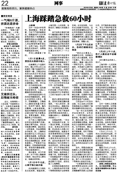 新闻背景:2014年12月31日晚11时35分,上海市黄浦区外滩陈毅广场,群众自发进行的迎新年活动中发生拥挤踩踏事件。截至1月4日上午11点,外滩踩踏事件共造成36人死亡,49人受伤。