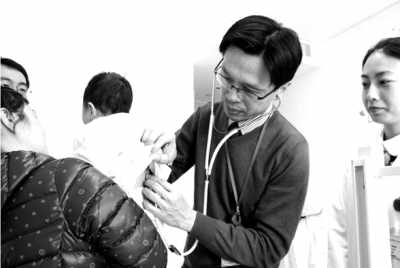 重庆:先心病患儿定期体检 先心病患儿在五岁前有自愈可能,因此应定期为先心病儿童检查。图为贵州遵义红花岗区的先心病定点医院来自新桥医院的专家免费为患儿诊断。 李春梅摄