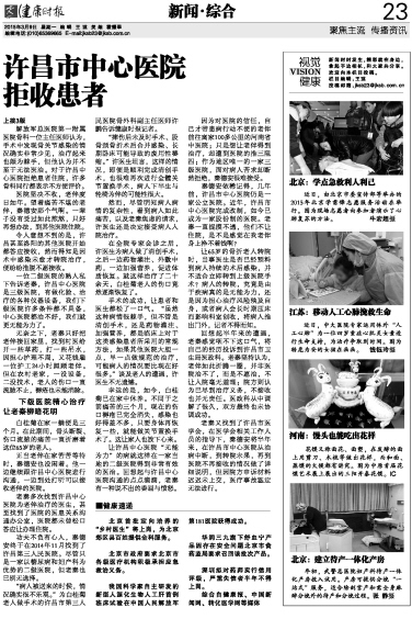 在他看来,医院是救死扶伤的地方,你治不好,但总可以让病情缓解下吧,让老人少受份罪,这总能做得到吧?无论如何,你医院不能这样把病人拒之门外啊?许昌市中心医院是家门口最好的医院,难道医院就任由病人病情因得不到治疗而恶化,也不愿伸出手搭救一把吗?