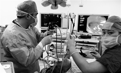黑龙江:硬质气管镜助取异物 利用硬质气管镜取气管异物,操作同时可以通气。近日,哈医大四院胸外二科刘成副教授用该技术,20分钟就为患者取出误吞十年的铅笔头。 刘 宇摄 |