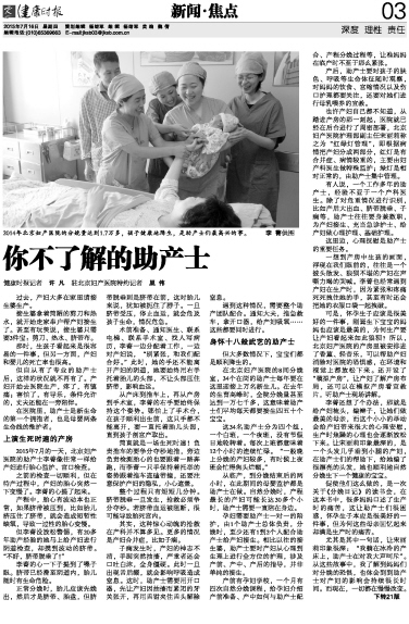 但目前,我国助产士与生育妇女比例为1∶4000,与发达国家的1∶1000差距悬殊。