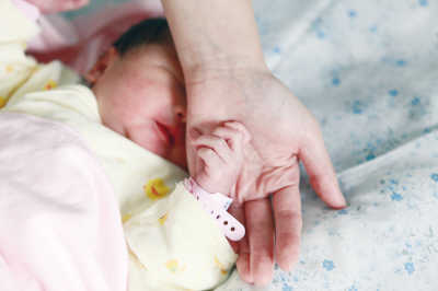 上海同济医院妇产科近日开始实行产检医生负责制,由孕妇自己选择产检医师,之后从建卡、产检、住院、分娩,都由同一医师负责。这让孕妈妈们避免了在产检门诊与住院部不是同一个医生管理的尴尬和麻烦,也拉近了医生与孕产妇的距离。图为同济医院产房里依偎在妈妈身边的小婴儿。
