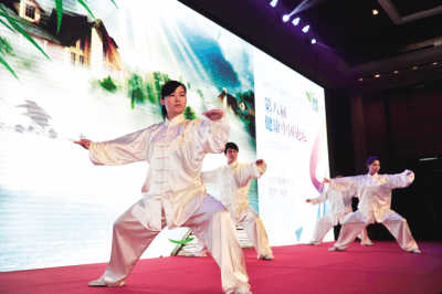 第八届健康中国论坛晚间环节,我国著名太极品牌易太极团队进行太极表演。