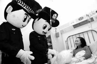 上海:真人玩偶病房中送祝福 近日,复旦大学附属儿科医院联合上海市公安局等团委青年慰问住院患儿,警察给小患者带去了真人玩偶鼓励他们勇敢面对病魔。 王炬亮摄 |