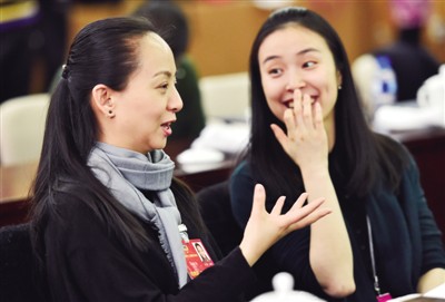 全国政协委员、全国青联副主席、中国残疾人艺术团团长邰丽华在接受人民网记者采访时表示,今年《政府工作报告》提出“切实保障妇女、儿童、残疾人权益”是给她留下印象最深刻的地方。她说,残障人士对精神文化生活的渴求和追求不亚于其他健全人,感谢中央政府对这一特殊群体的关怀和爱护。图为3月6日邰丽华委员在小组会议上用手语与他人交流。