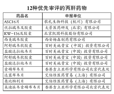 1000万丙肝患者的等待终有回音 在丙肝药物方面也有利好消息,7家企业12个丙肝药品被纳入优先审评,1000万丙肝患者的呼声有了回音。