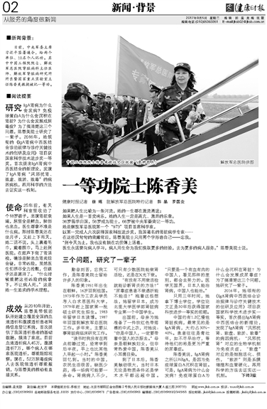 日前,中央军委主席习近平签署通令,给两个单位、10名个人记功。其中中国工程院院士、解放军总医院肾脏病科主任医师、解放军肾脏病研究所所长暨国家重点实验室主任陈香美教授被记一等功。