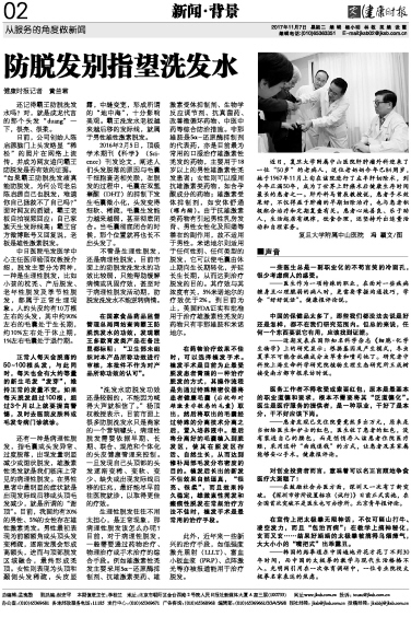 “洗发水防脱发功效还是较弱的,不能因为喊得大声就相信了。”杨顶权教授表示,目前市面上很多防脱洗发水只是商家的一个营销噱头,病理性脱发需要依据早期、长期、联合、规范和个体化的头皮健康管理来控制。一旦发现自己头顶部的头发逐渐变稀、变软、变少、缺失或出现发际线后移的征兆,最好能尽早前往医院就诊,以取得更佳的疗效。