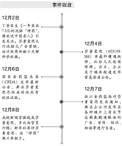 12月6日,在CFDA发布的公告中对莎普爱思提出要求,为防止误导消费者,该药品批准广告应严格按照说明书适应症中规定的文字表述,不得有超出说明书适应症的文字内容。
