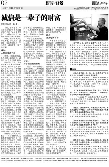 诚信,不只是奉献,更是一种资本,带来健康和财富。做一个诚信的人,为人生增加财富吧!