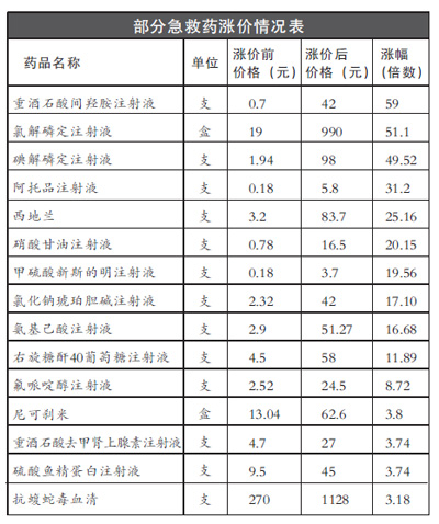 解决急救药价格上涨必须从源头查起