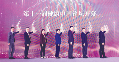 2019年1月8日,第十一届健康中国论坛(2018年度)在京举行。原国务委员、十一届全国人大常委会副委员长陈至立(左四),人民日报副总编辑卢新宁(左三),中国工程院院士、中国医学科学院阜外医院院长胡盛寿(左二),北京大学党委副书记、北京大学医学部党委书记刘玉村(右三)等参加开幕式。