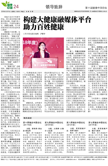今年是第十一届健康中国论坛,十年之后再出发,预祝大会圆满成功!期待各位来人民日报,来人民网,来健康时报做客,并祝各位来宾身体健康!