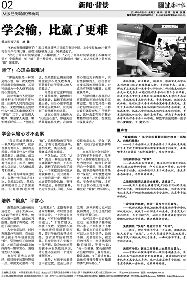 “我花了两年时间学会输了不摔球拍。”“又花了两年时间学会输了不嚎啕大哭!”专家表示,怕“输”是一种天性,学会正确面对“输”,在人生的路上甚至比“赢”还重要。