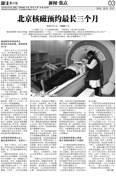 “看你要做哪个部位的核磁,做骨科核磁得等到—个月后。”“11月初预约做胰腺的核磁,但医生告诉我得等到2020年1月份了”……