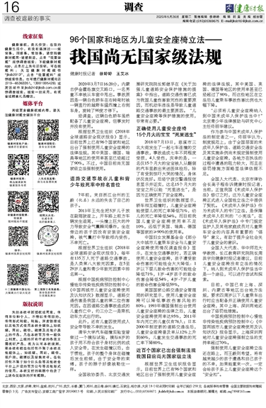 全国人大代表、北京市律协会长高子程告诉健康时报记者,当前,正值我国《未成年人保护法》修订之时,这为儿童安全座椅正式进入全国性立法之中提供了契机。《未成年人保护法》作为未成年人的专门立法,是保障未成年人权利的“小宪法”,在《未成年人保护法》中专门规定监护人及其他家庭成员对儿童乘车安全的内容具有重要的“倡导”意义,有助于提升全社会关于儿童安全的意识。