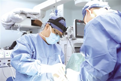 11月6日,在广西医科大学第一附属医院,一位脑死亡患者成功捐出心脏、双肾、肝脏(劈离为二)、肺、一侧角膜,共为7位患者带去“新生”。近三年来,广西医科大学第一附属医院器官移植科团队已完成肝、肾等大器官移植超500例。图为该院器官移植科董淳强主任医师(左)团队进行肝移植手术。韦 娜报道