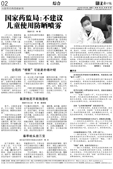 4月15日,国家药监局发布提示,不建议儿童使用防晒“喷雾”化妆品,尤其是小年龄儿童、过敏体质儿童。