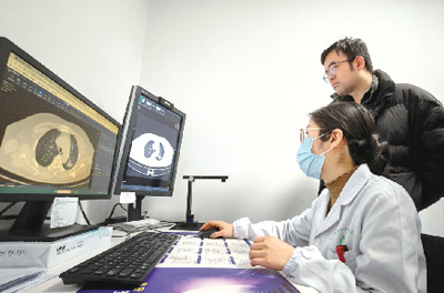“以前做检查要等一个小时才能拿到结果,现在1分钟就能拿到AI医生出具的报告。”一名患者因咳嗽到武汉市硚口区韩家墩街社区卫生服务中心做CT检查。放射科主管技师将检查结果上传给AI医生,仅58秒就生成了一份详细的影像辅助诊断报告。图为该中心放射主管技师正在使用AI医生系统。