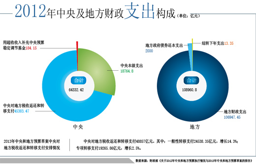 根据2013年的预算,尽管财政压力不轻,中央转移支付仍将增加到43804亿元,比去年增加了3500亿元。