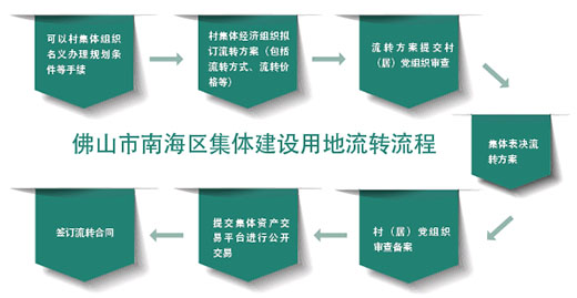 从上世纪90年代初开始,为满足企业用地需求,南海区村组两级集体经济组织以兴办乡镇企业名义申请用地,办理土地使用权证,然后将土地出租给企业投资建设。2012年,南海区工业总产值达到4226亿元,有一半以上的工业用地是集体建设用地。