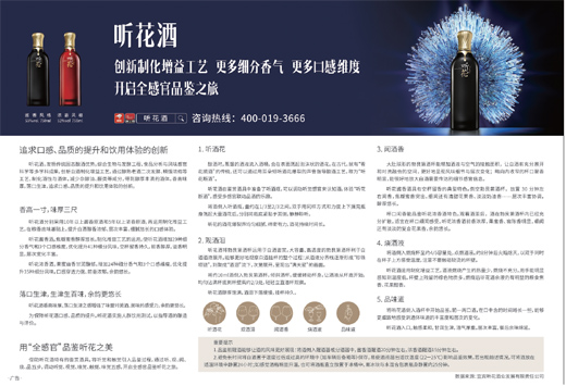 听花浓香酒,果蜜幽香甘润馥郁。增加24种细分香气和3个口感维度,优化提升35种细分风味,口感穿透力强、前香浓郁,余韵悠长。