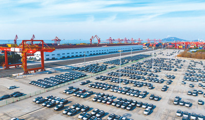 近年来,安徽省芜湖市通过优化营商环境、强化科技攻关等措施,加快发展新质生产力,推进汽车产业的发展。图为近日,芜湖港朱家桥港区码头,整齐排列的汽车等待装船出口海外。