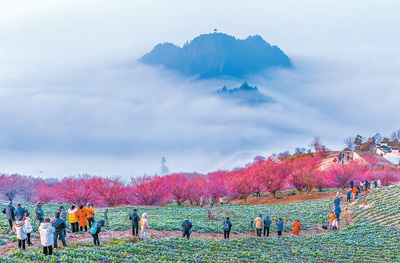 2月4日,安徽省黄山市歙县石潭景区梅花绽放,吸引游客观赏。